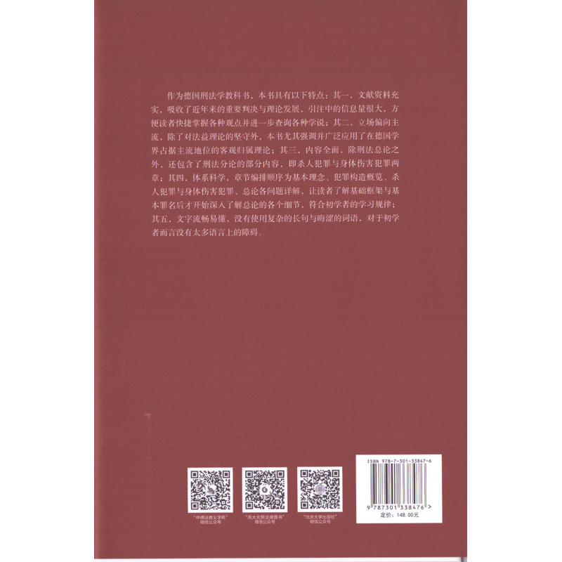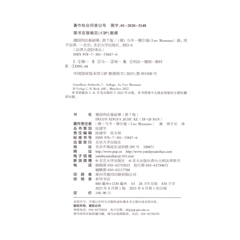 德国刑法基础课(第7版)[德]乌韦 穆尔曼 著 法律知识读物北京大学出版社 新华书店正版 - 菲尼克斯图书专营店