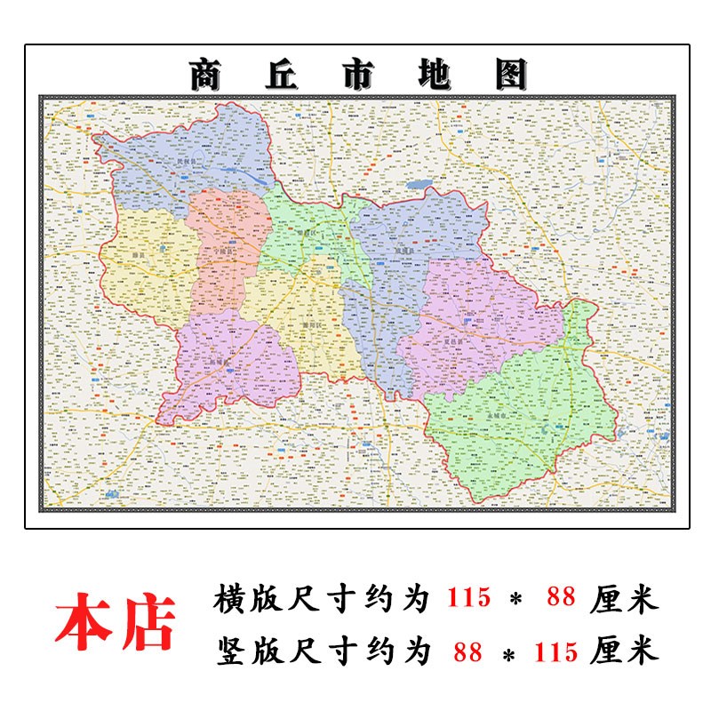 商丘市地图1.15m折叠家用高清办公室会议室书房新款墙贴装饰画 - 诚珠轩商城
