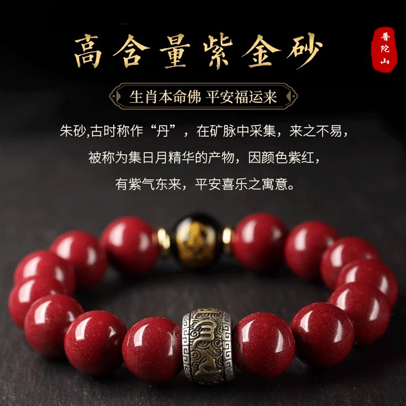 普陀山原矿朱砂手串天然本命年护身符手链属蛇转运珠平安福男女款 - 普陀山法雨流通处