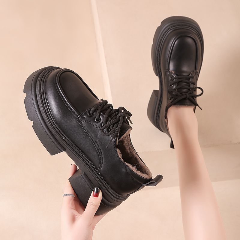 英伦风厚底增高乐福小皮鞋女2025秋季新款百搭女鞋小个子系带单鞋 - 伯瑞美棋店