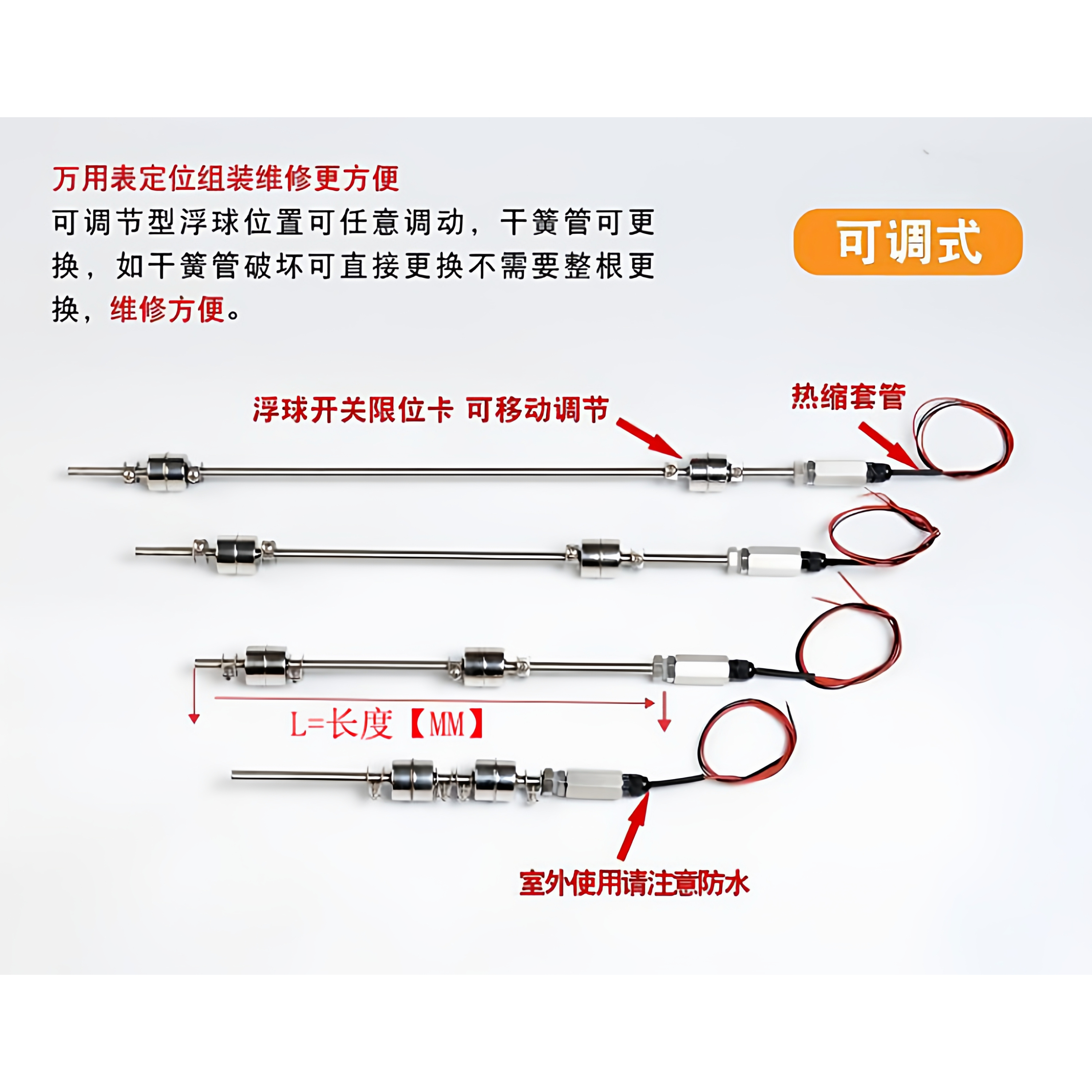 可调式双浮球水位开关不锈钢连杆液位计控制器水箱水池传感器激光
