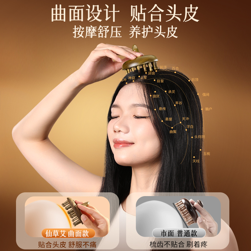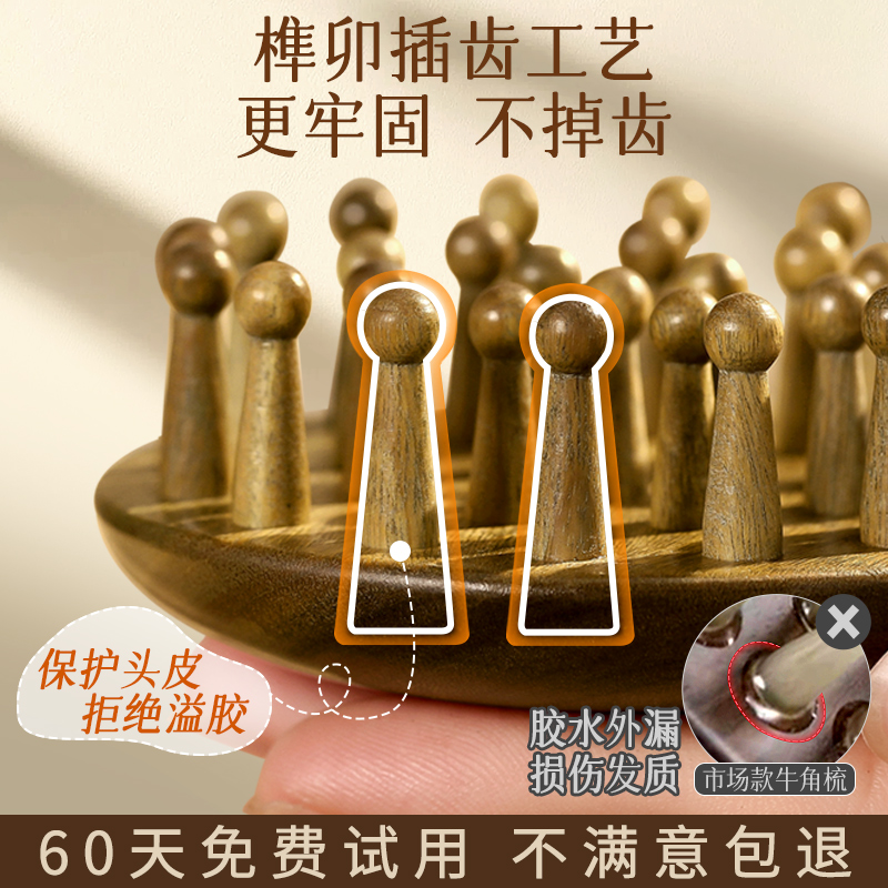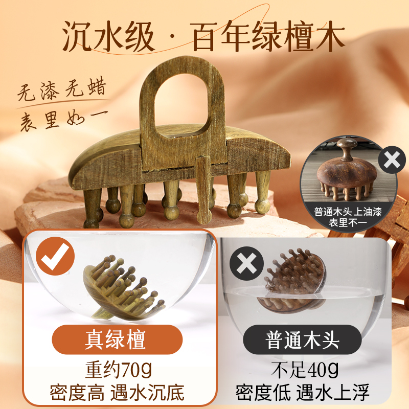 天然绿檀木按摩梳子头皮经络梳头牛角脱发头疗器防刷头部疏通神器 - 麦天家居旗舰店