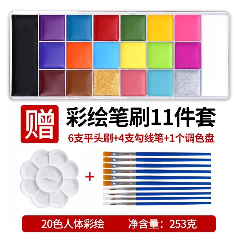 20色人体彩绘颜料儿童脸部身体万圣圣诞节舞会戏剧油彩持久化妆膏