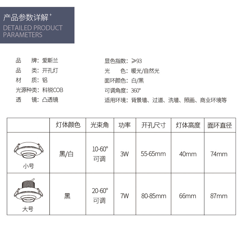 爱斯兰LED变焦牛眼聚光珠宝柜台灯客厅卧室厨卫天花孔灯无灯
