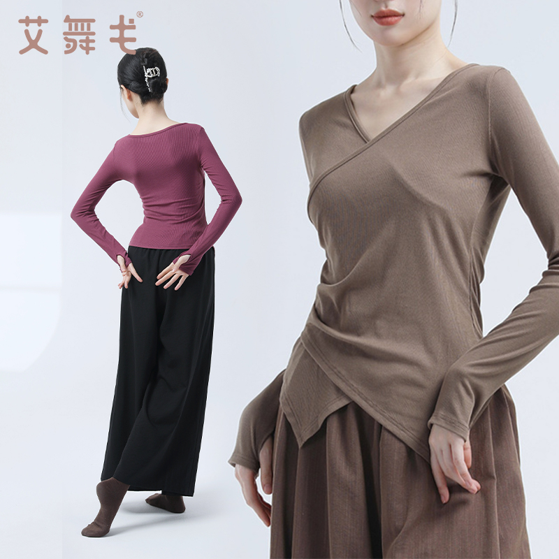 艾舞戈舞蹈上衣女中国舞形体服古典舞蹈服v领长短袖现代舞练功服