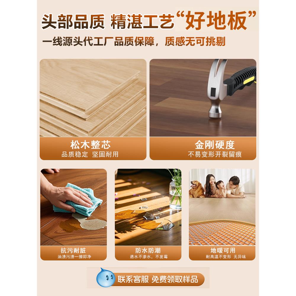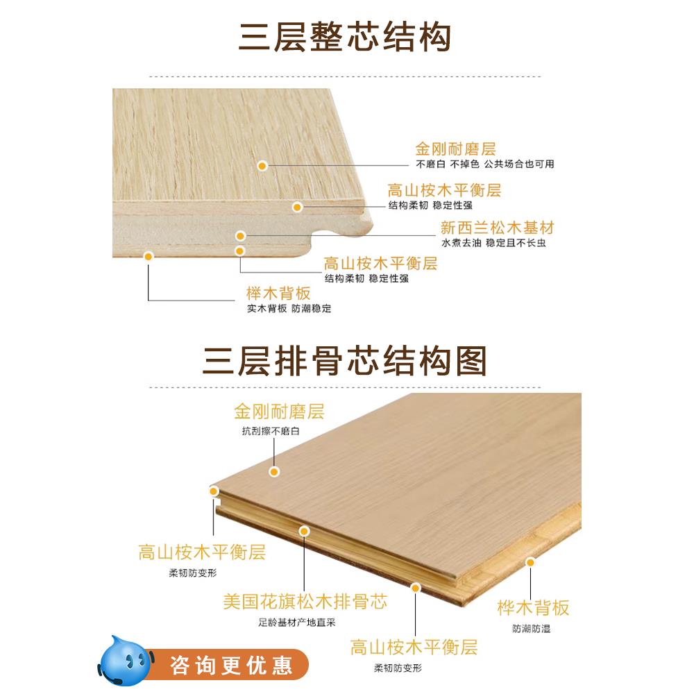 新三层纯实木复合地板家用防水环保原木地暖专用多层木地板自己铺 - 八达五金精品店