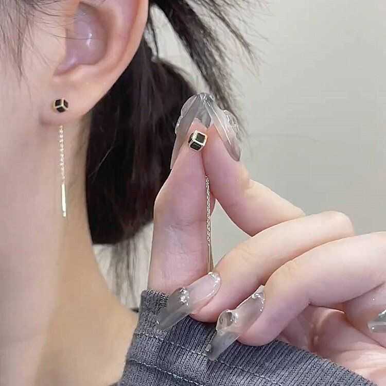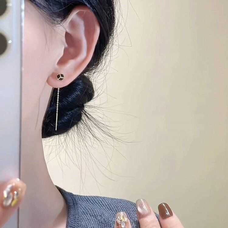 您的位置:他他商城  >   >  s925银针黑色立体方块流苏耳线女小众设计感时尚简约圆脸显瘦耳环