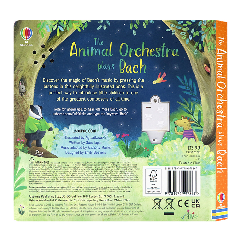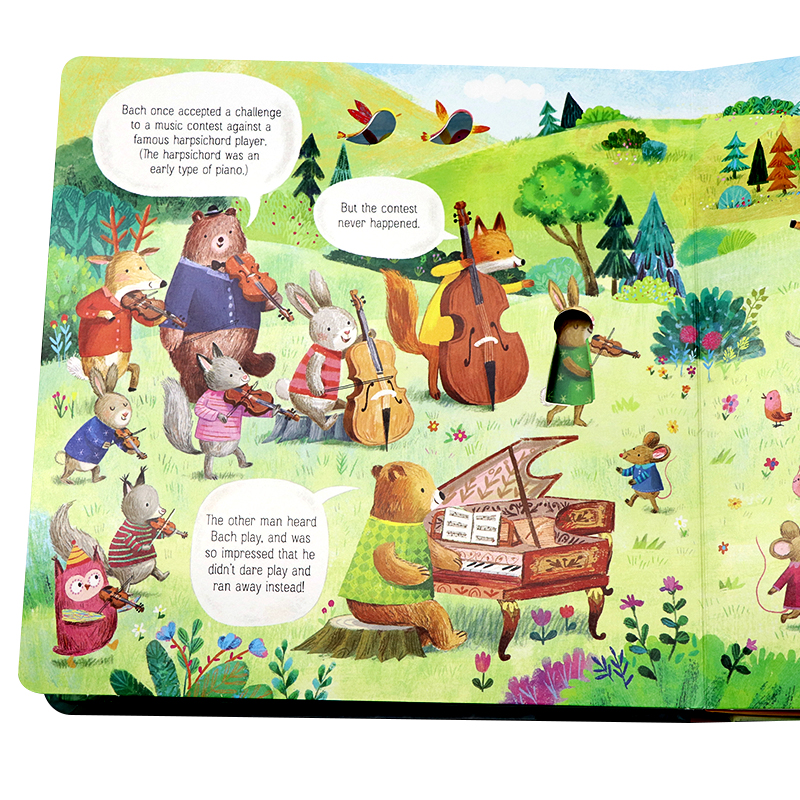 Usborne出品 动物管弦乐团巴赫协奏曲触摸发声书 Animal Orchestra Plays Bach 英文原版绘本 按键发声书 动物童话故事音乐洞洞书 - 文萃图书专营店