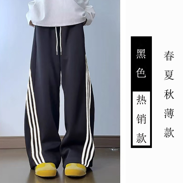 胖妹妹2-300斤大码三条杠弯刀阔腿裤女秋冬加绒加厚宽松运动卫裤