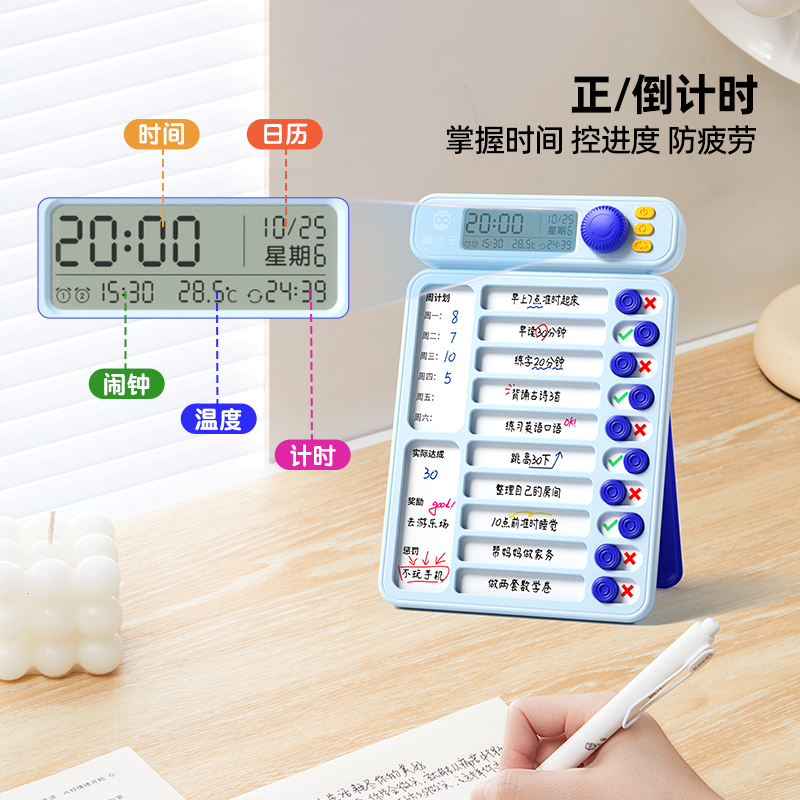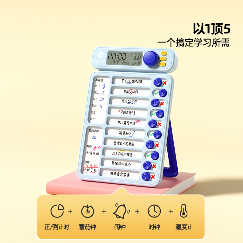 猫太子自律打卡器小学生专用学习计划表作业课程记录表正倒计时器儿童用打卡神器时间管理器每日任务文具用品 - 国货严选旗舰