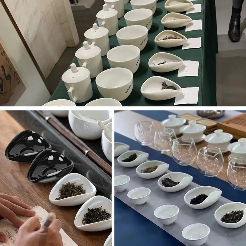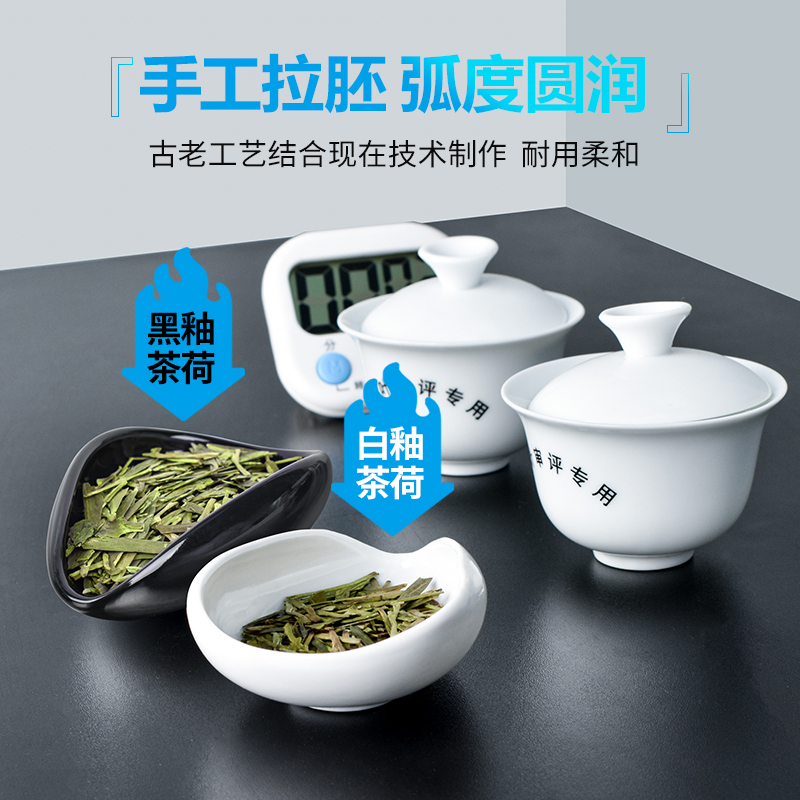 白釉茶荷评茶员审评茶样黑茶盘茶艺茶道展示投茶碟茶叶SC评审器具 - 茶叶教学仪器设备