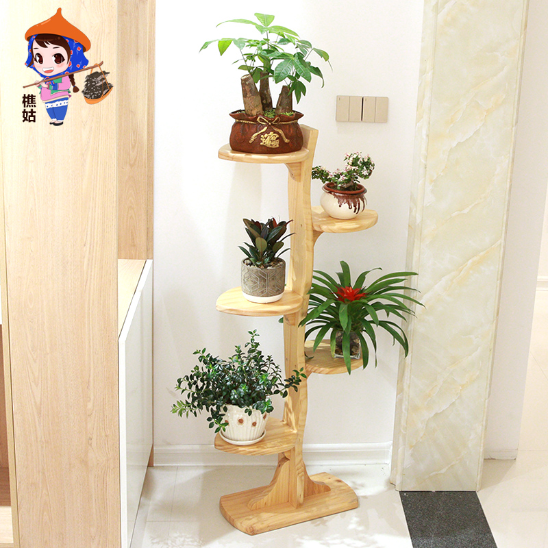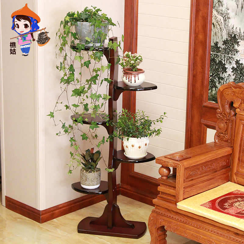 实木花架置物架阳台客厅r落地绿萝室内装饰盆景花架子木制组装中 - 乐李园日用品
