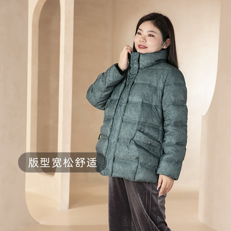 美丽客栈羽众不同外套冬季立领大码女装宽松显瘦保暖白鹅绒羽绒服