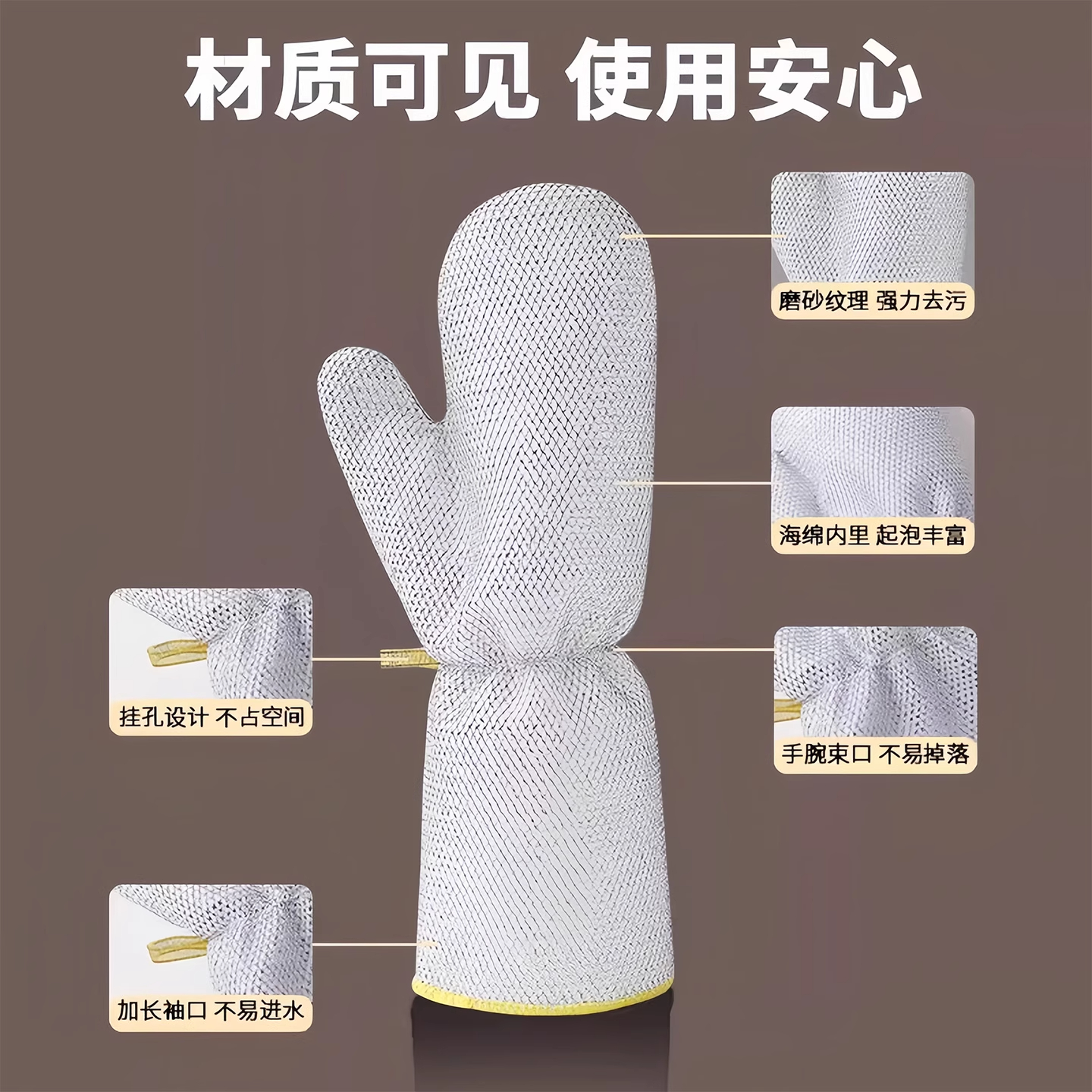 加长钢丝洗碗手套加厚防水护手不伤锅钢丝球刷锅神器洗碗专用手套