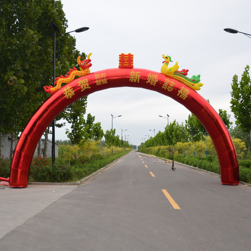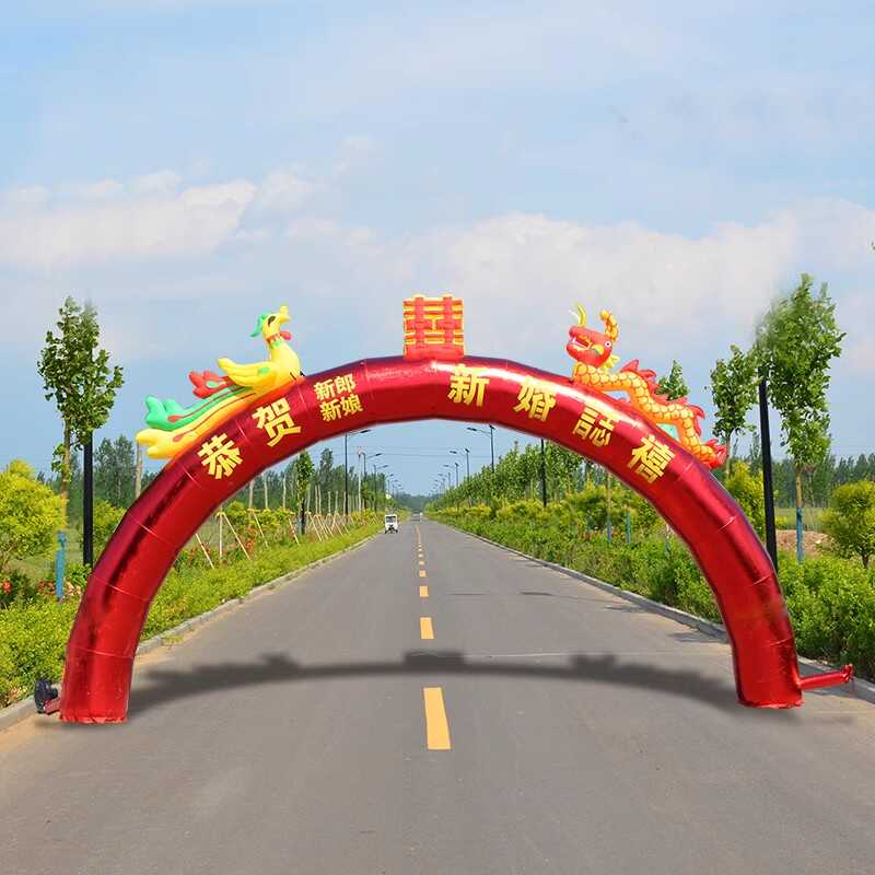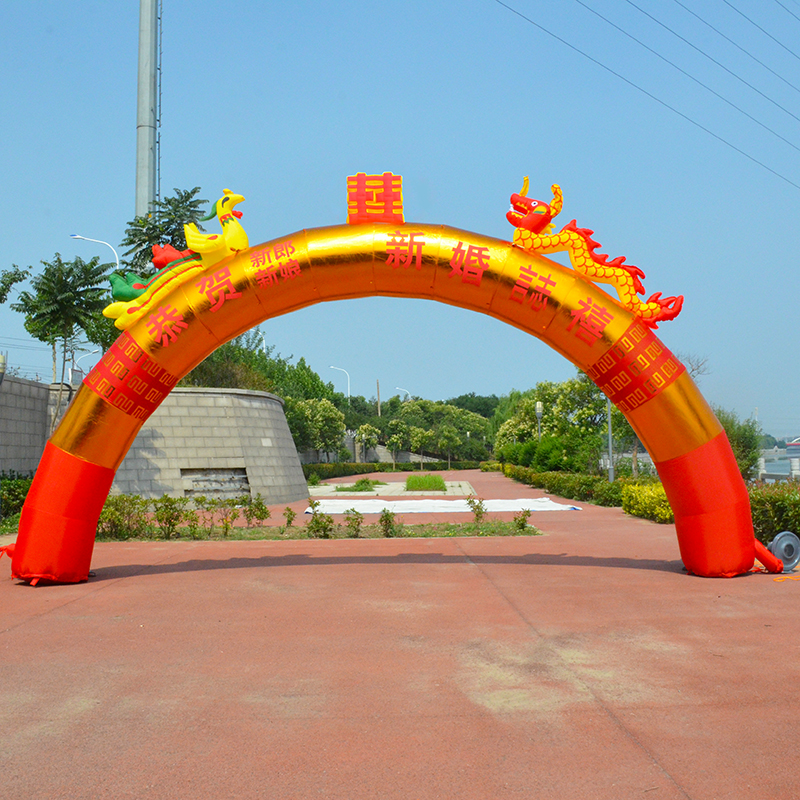 万福金龙凤全红金充气拱门婚庆庆典彩虹门开业活动双龙8米10m龙凤