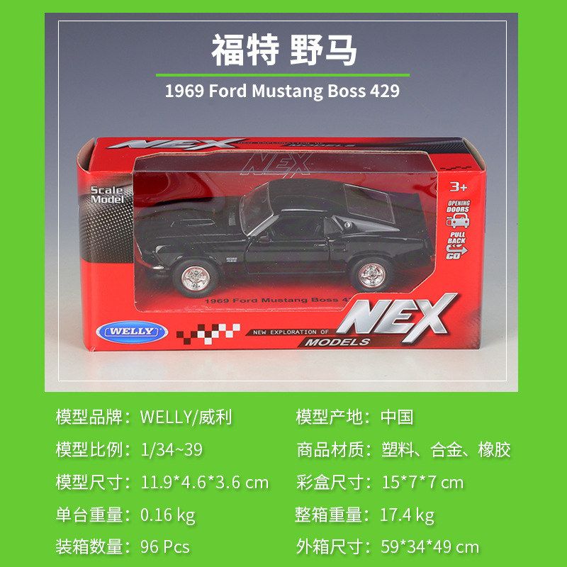 WELLY威利1:36福特野马Ford Mustang Boss 429仿真合金回力车模型