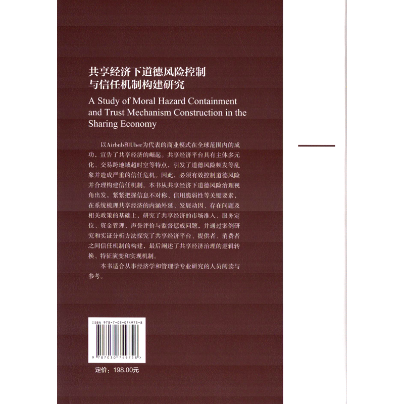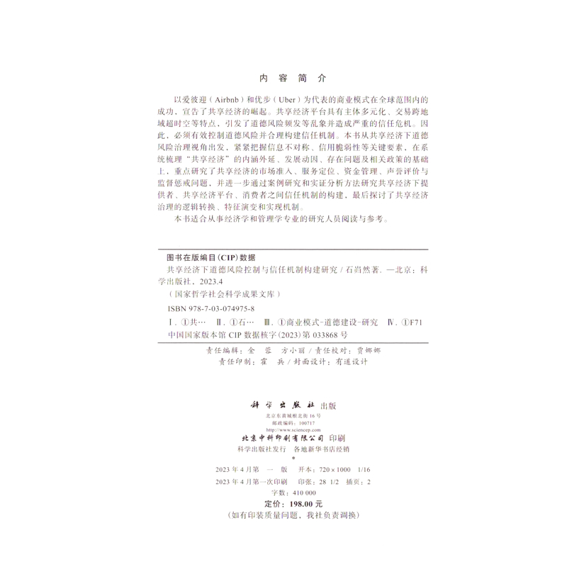 共享经济下道德风险控制与信任机制构建研究石岿然经济理论中国科技出版传媒股份有限公司新华书店正版
