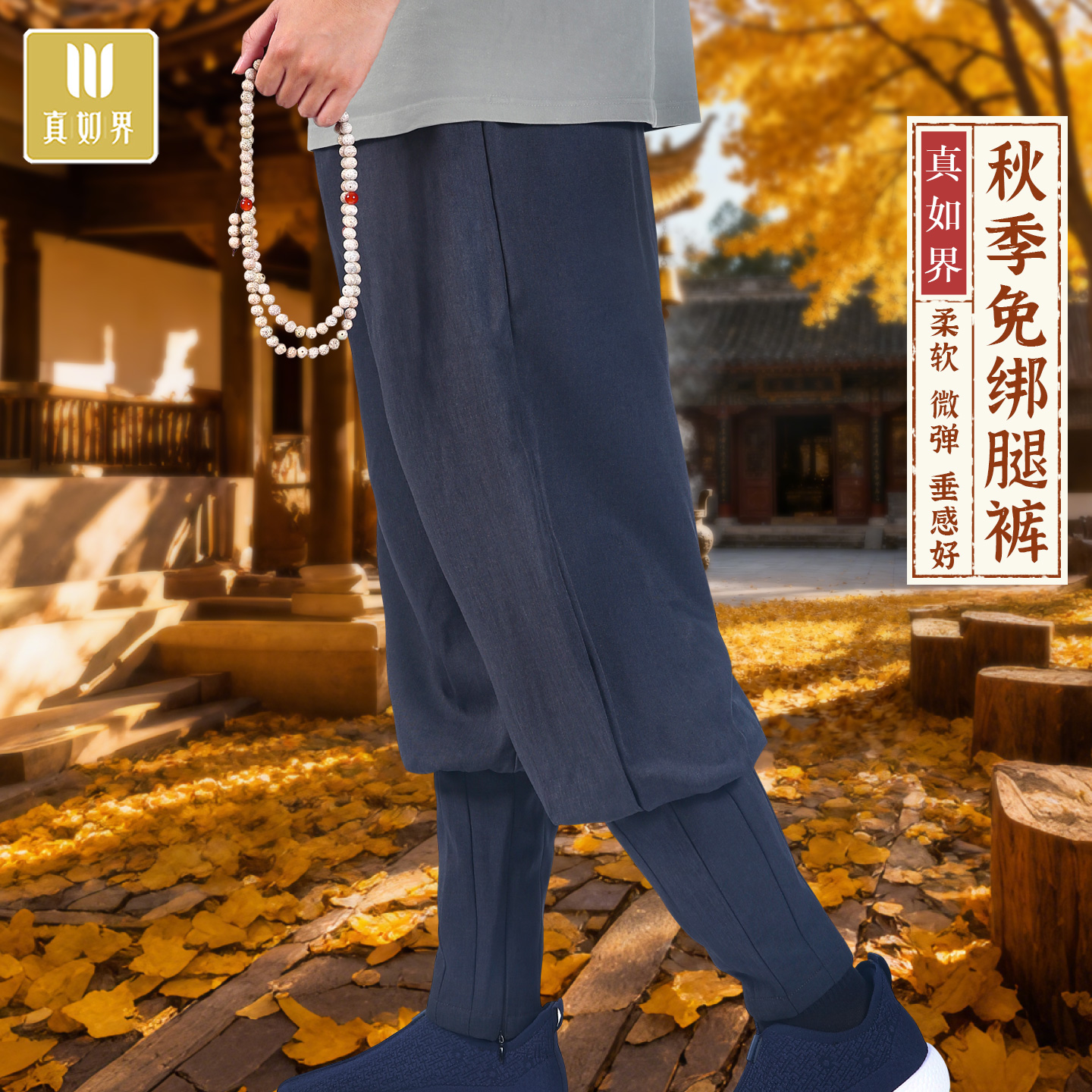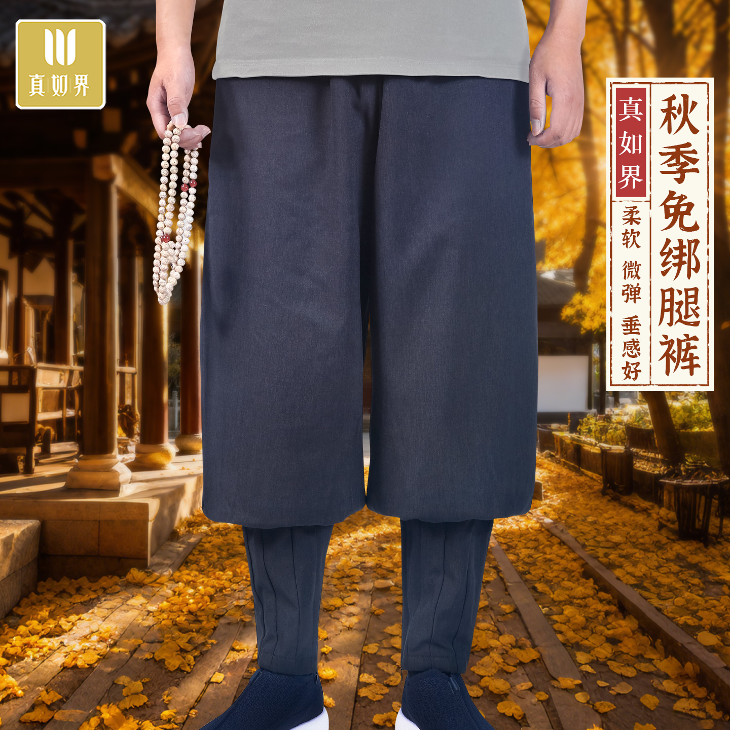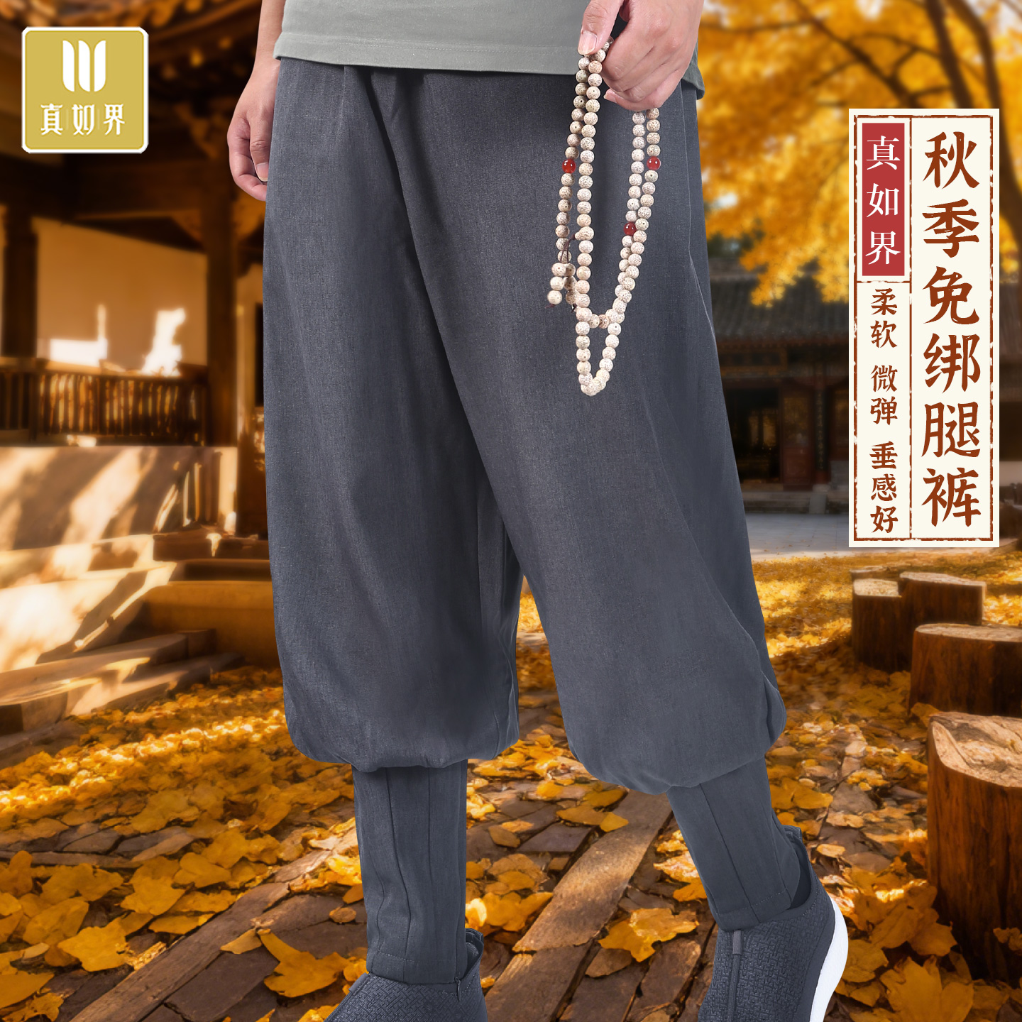 真如界僧裤秋季结缘免绑腿禅修裤休闲裤道士舒适透气和尚免扎腿裤 - 真如界棉麻生活馆