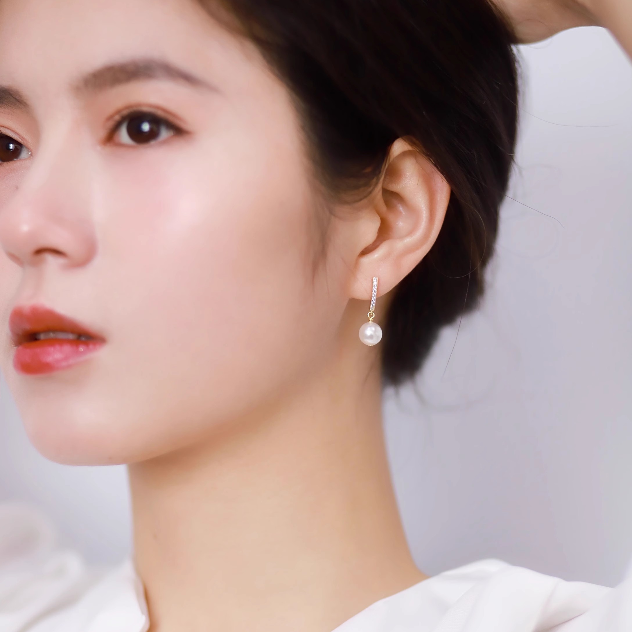 风在吹纯银强光珍珠耳环气质简约精致高级感耳钉耳坠春夏轻奢耳饰 - 希娅Pearl轻珠宝设计