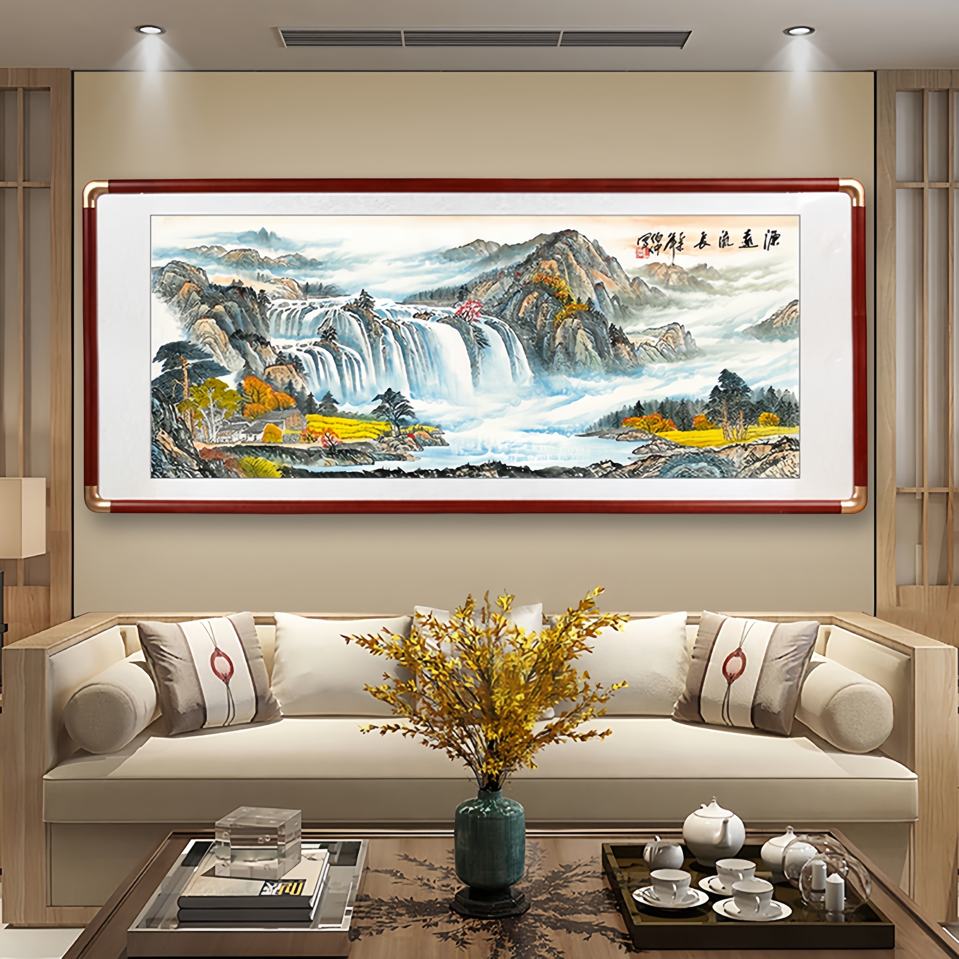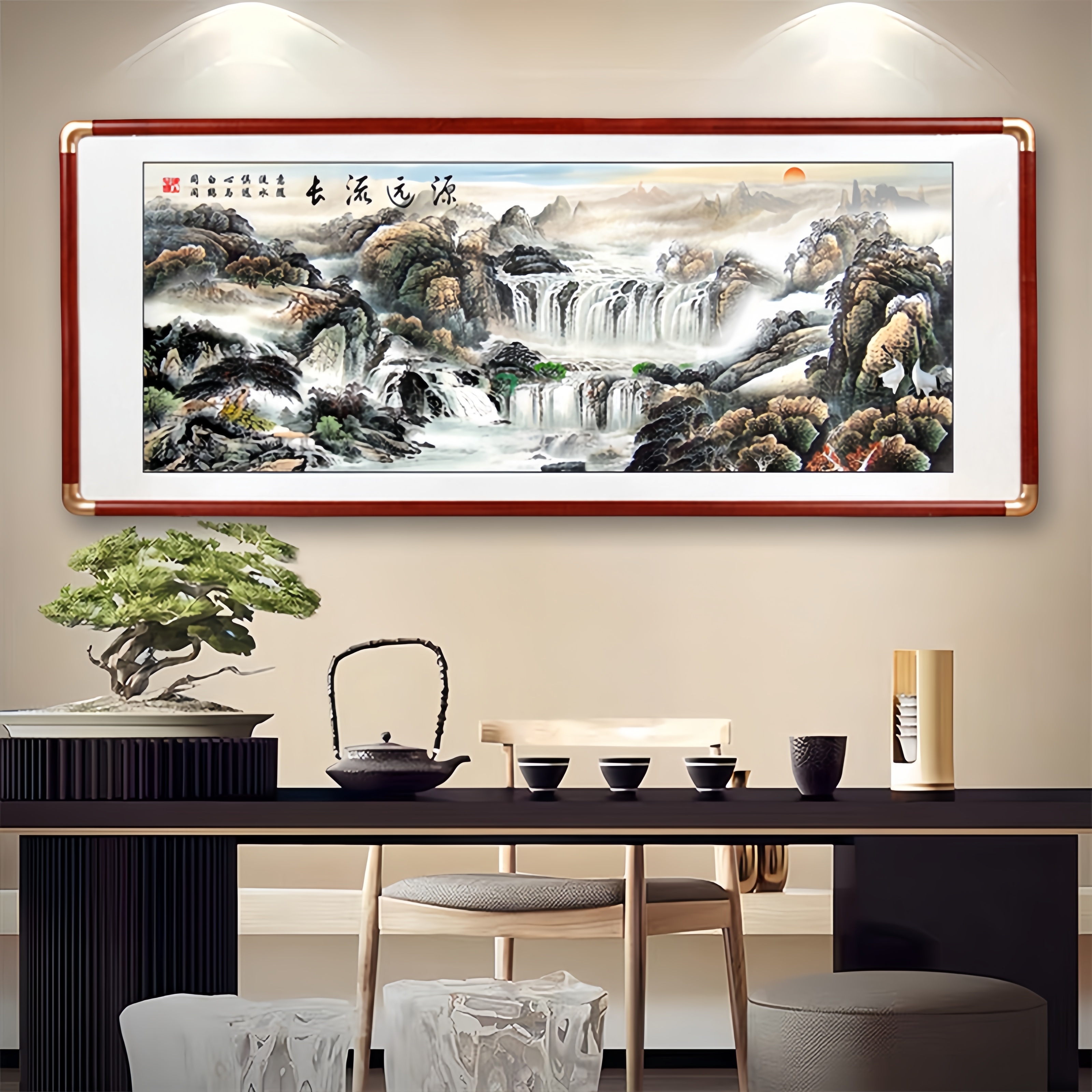 聚宝盆源远流长山水画风水客厅办公室装饰画水墨国画西墙挂画 - 瀚墨匠心国画