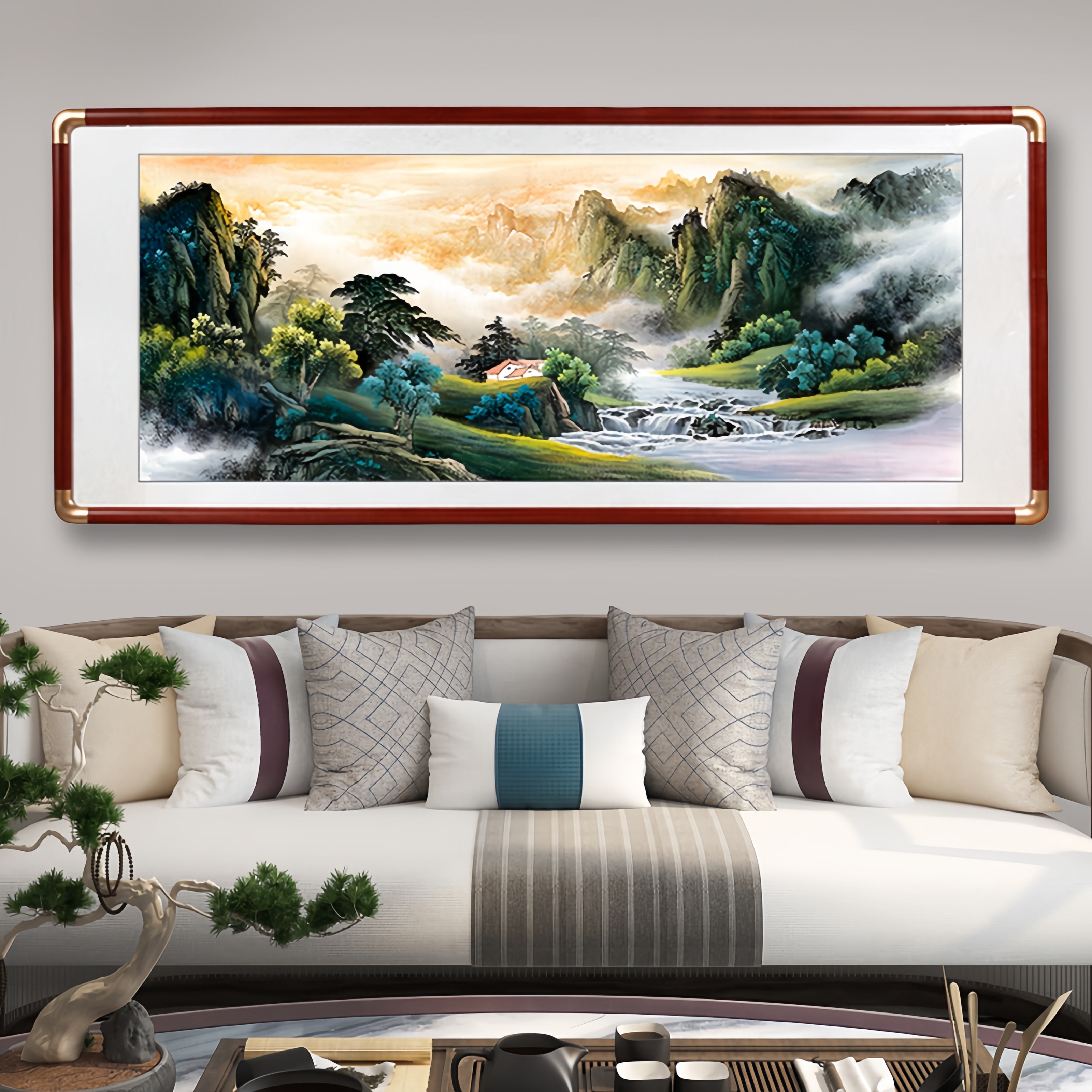您的位置:他他商城  >   >  聚宝盆源远流长山水画风水客厅办公室装饰画水墨国画西墙挂画