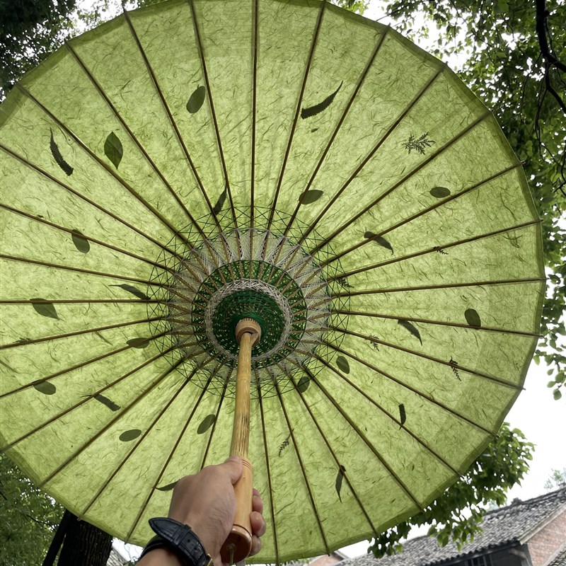 许家油纸伞古法手工纸浸染翠绿色镶嵌植J物干花晴雨两用桐油油纸