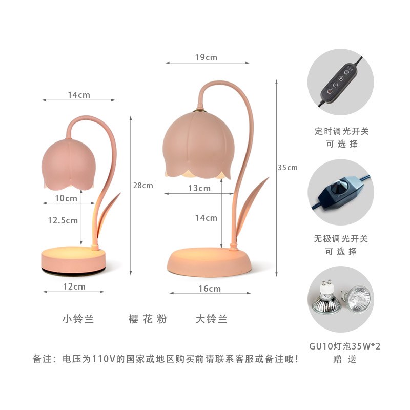MOON铃兰台灯奶油风无火香薰灯融蜡灯香氛家居摆件V融烛灯生日礼