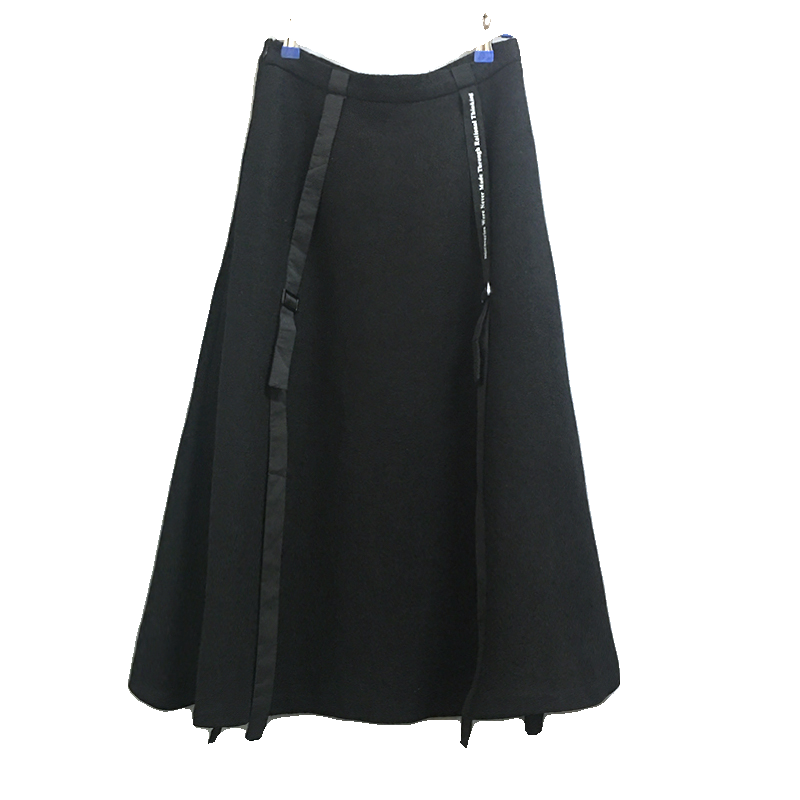圣迪家女式羊毛半身裙时尚织带A字中长裙含羊毛41%1116