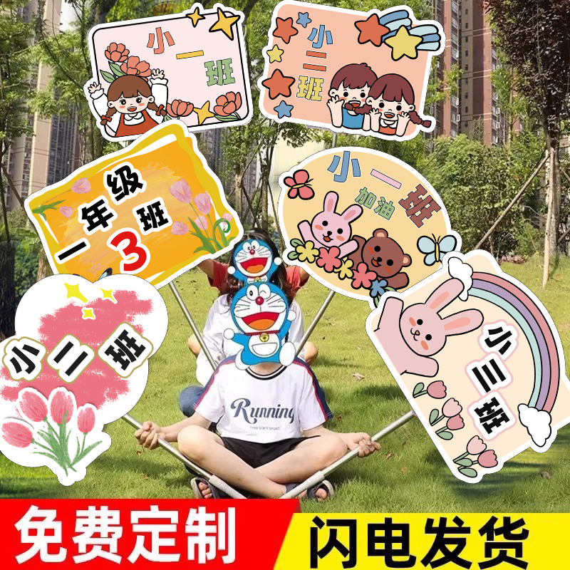 您的位置:他他商城  >   >  手举班级牌幼儿园中小学生学校运动会队牌创意班牌接机托管班接送牌杆子广告牌PVC雪弗板异性手持牌标识牌