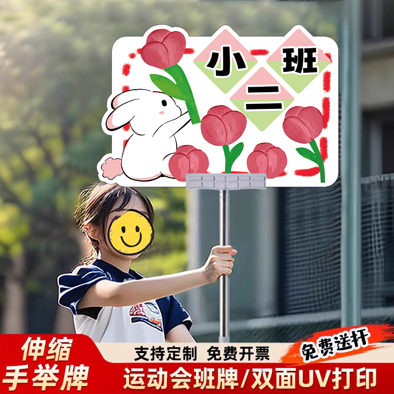 手举班级牌幼儿园中小学生学校运动会队牌创意班牌接机托管班接送牌杆子广告牌PVC雪弗板异性手持牌标识牌 - 中奥晋呈旗舰店