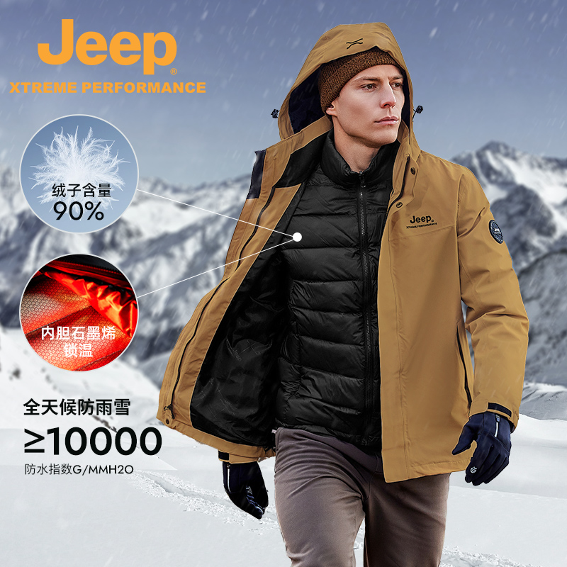Jeep吉普户外三合一羽绒服冲锋衣旅游登山男女情侣款防水防风外套 - Jeep吉普嘉裕专卖店