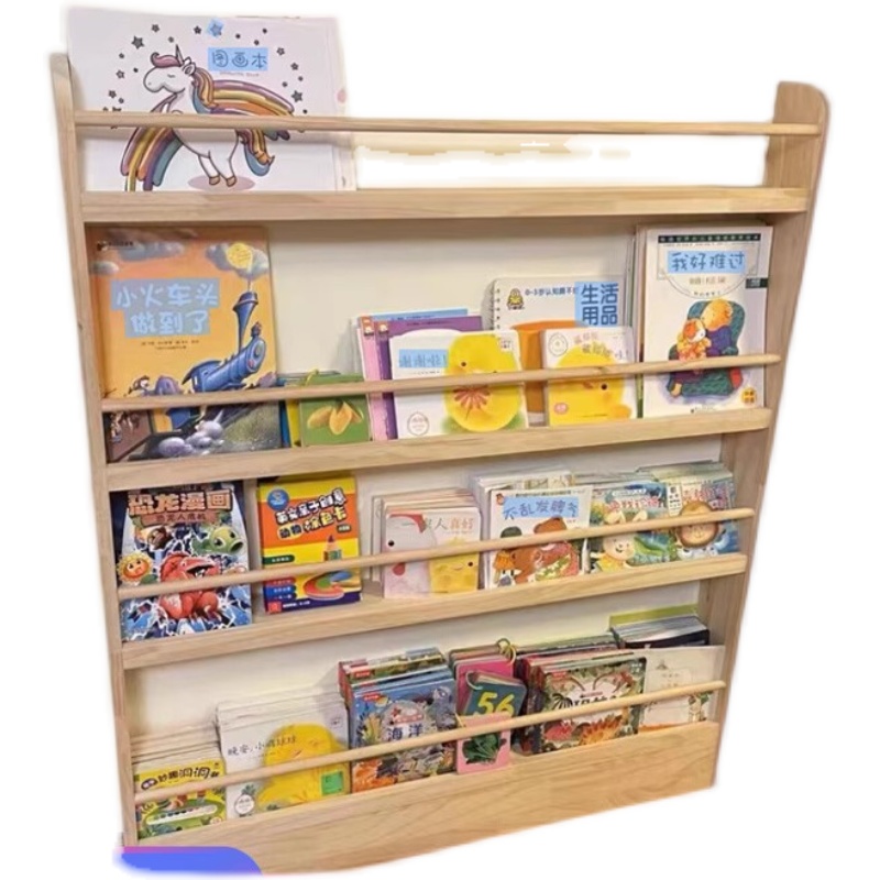 10CM深度实木书架儿童阅读区书柜靠墙绘本收纳架落地多层壁挂落地