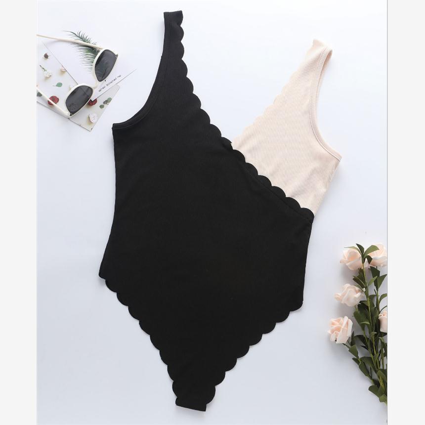 European and American wavy sexy V-neck stitching bodysuit - 有因必有果24