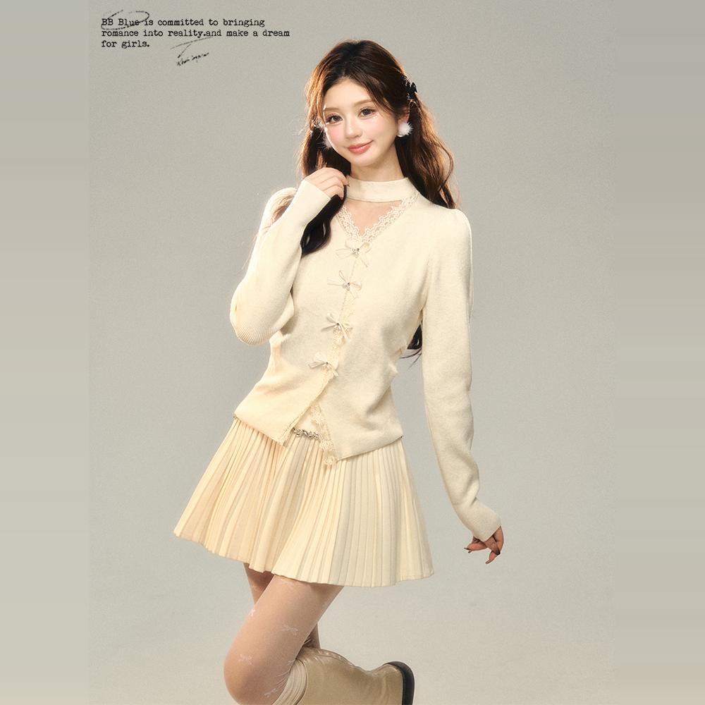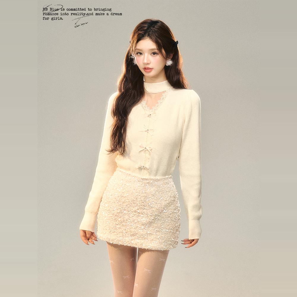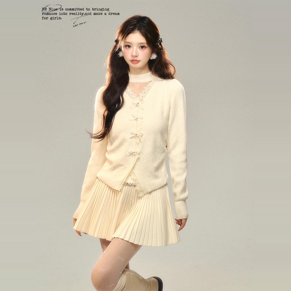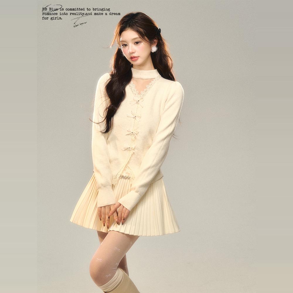 BB BLUE 原创设计 V字镂空蝴蝶结针织上衣 秋冬新款气质百搭内搭 - BB BLUE STUDIO