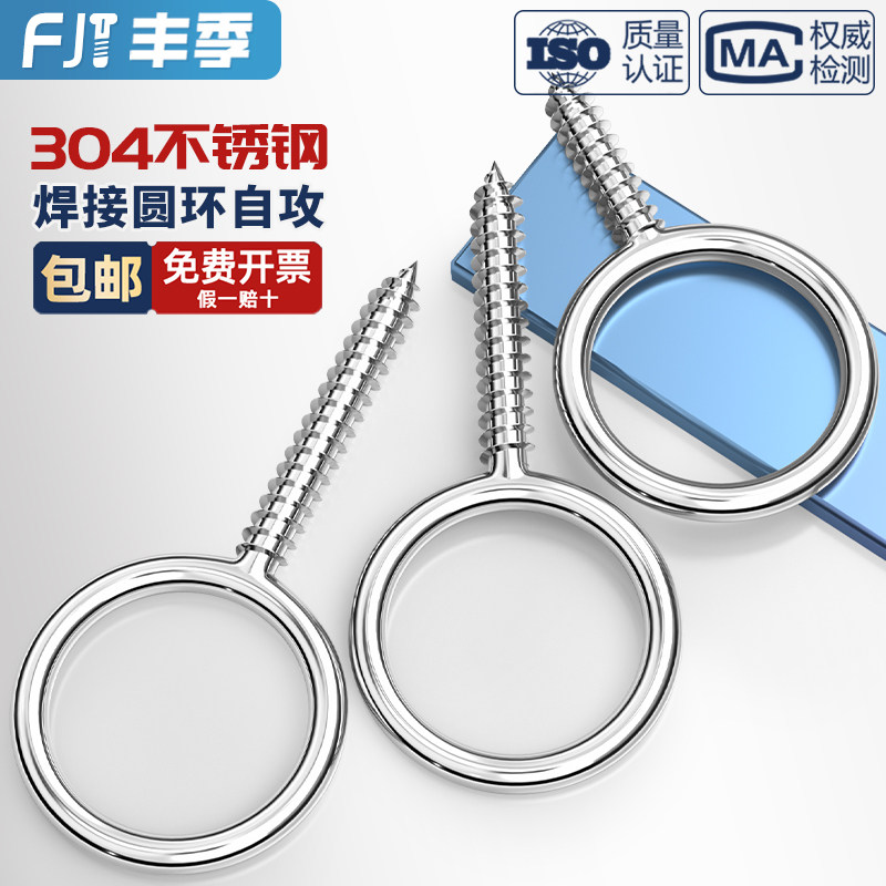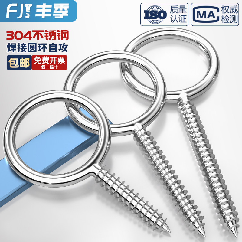 304不锈钢焊接圆环自攻螺丝羊眼圈加长吊灯钩螺杆带孔活节自攻丝 - 丰季旗舰店