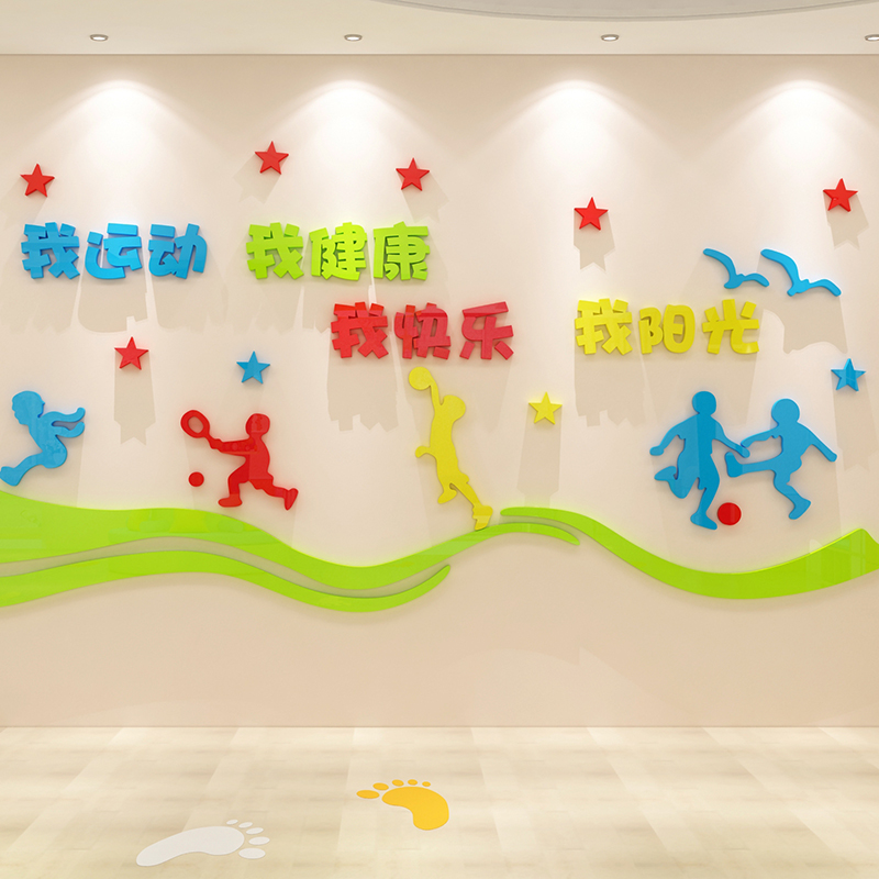 体育室运动文化墙贴适能活动标语学校健身馆蓝球幼少儿园环创主题
