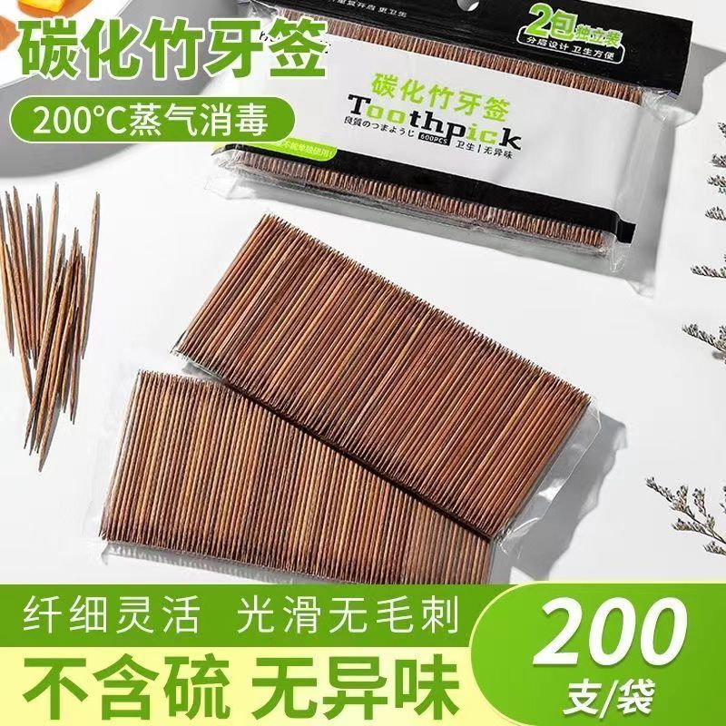 碳化竹牙签单头尖家用便携环保一次性剔牙神器高质量高档竹制实用 - 速洁家居