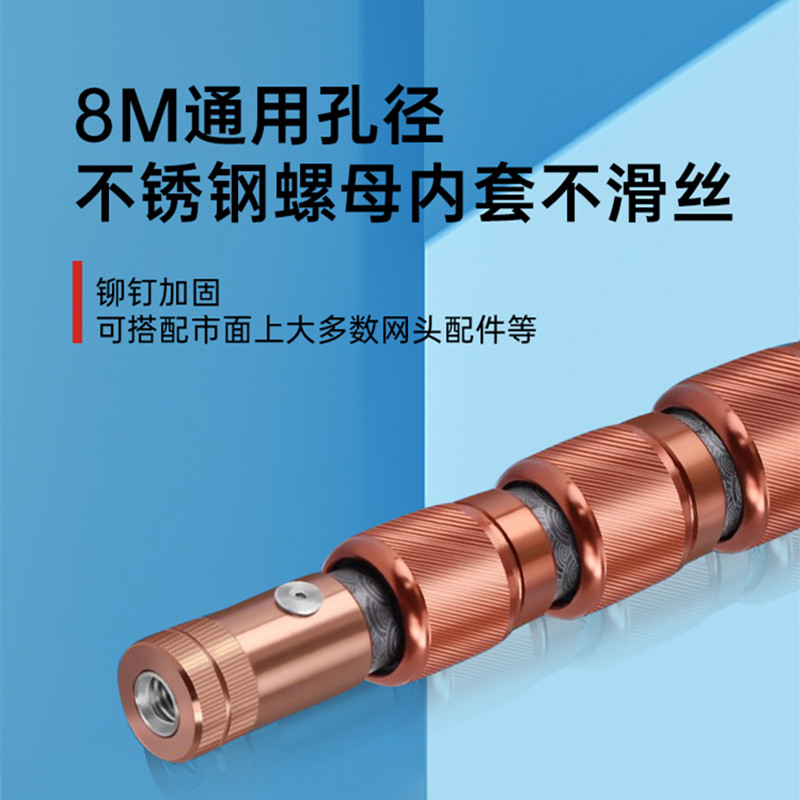 高碳素大物抄网竿采摘打窝割草裸杆轻硬挺伸缩锁定345678米捞鱼杆 - 富渔匠渔具店