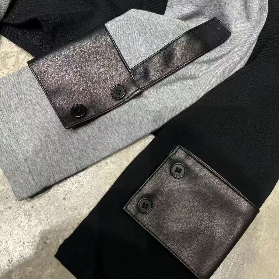 您的位置:他他商城  >   >  LIAN里安2025秋季新款小众设计撞色拼皮圆领套头打底衫长袖T恤女