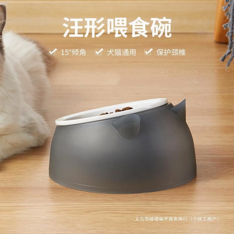 猫碗陶瓷狗食盆护颈猫咪食碗不锈钢狗狗碗饭碗喝水碗饭盆宠物用品 - 赏涵韵旗舢店企业店