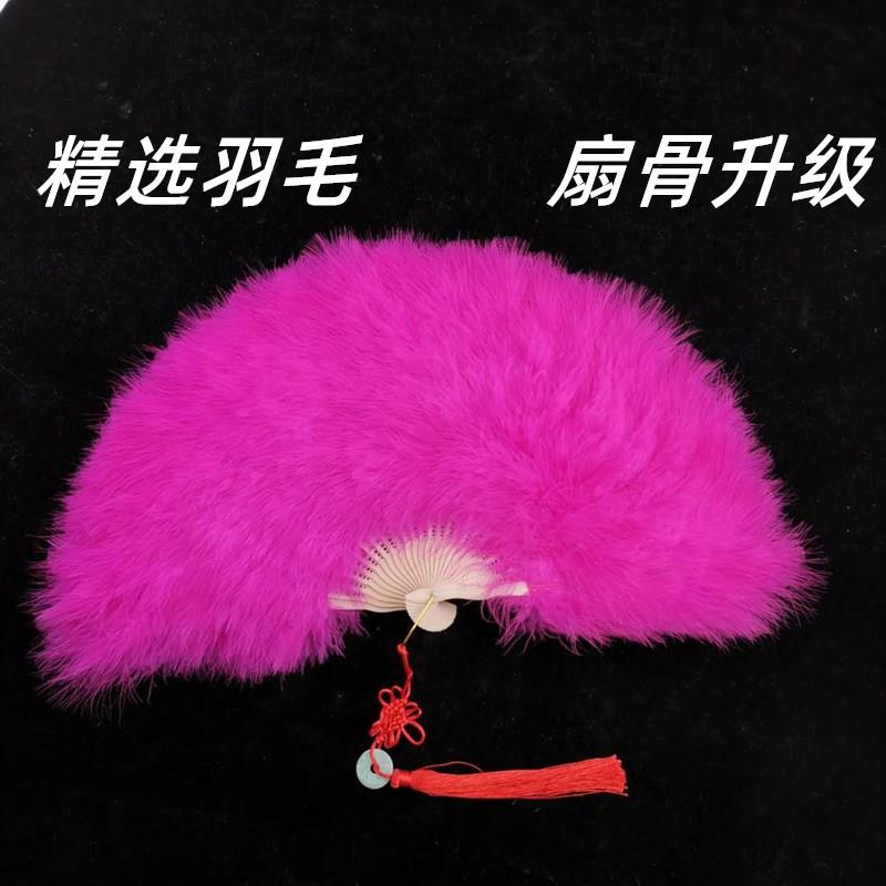 羽毛扇子舞蹈扇舞台表演旗袍走秀广场舞网红白色羽毛扇标准扇折扇 - 广漫枝枫丹希专卖店