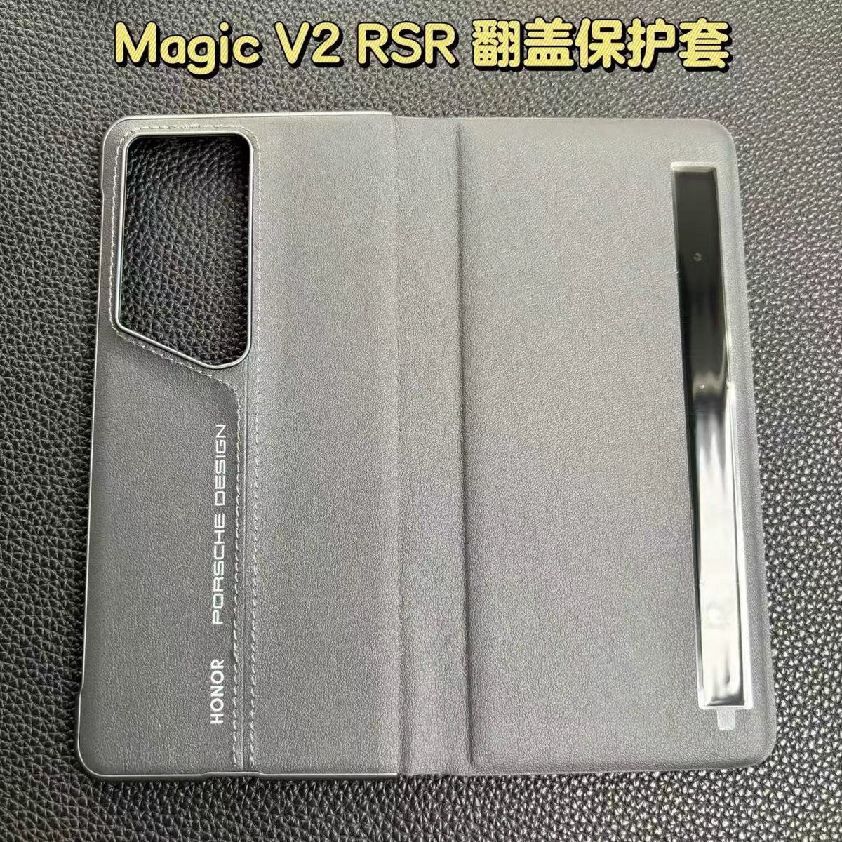 适用于荣耀MagicV2RSR原装保时捷设计皮革中轴磁吸智能视窗保护套MagicV2RSR原装中轴磁吸皮革保护壳