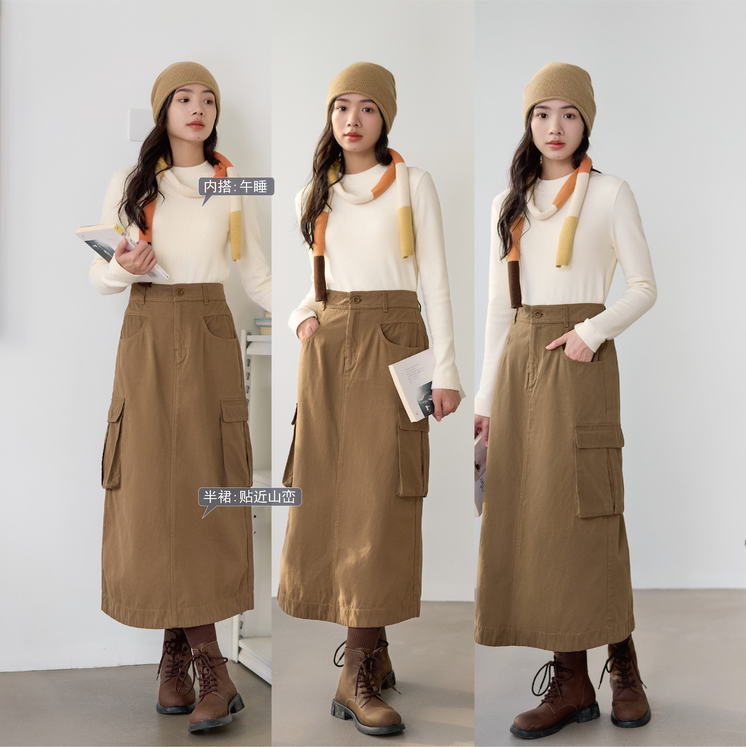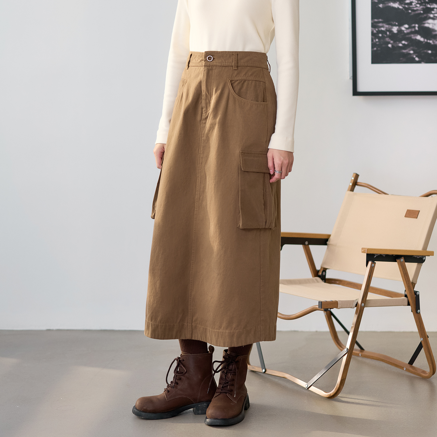 梭家|贴近山峦|简约工装风羊毛棉秋冬直筒裙木棕色a字裙宽松