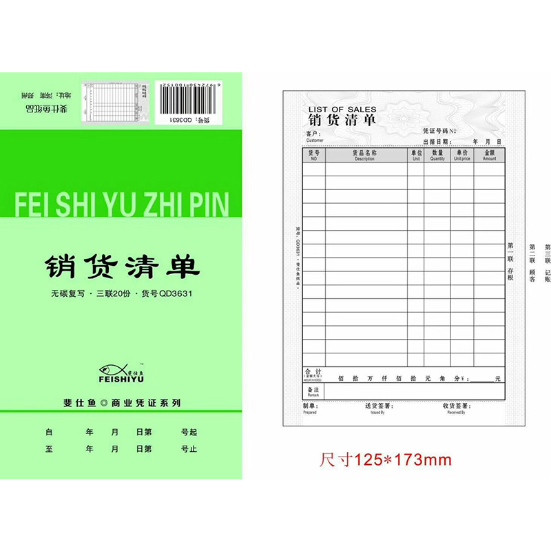 您的位置:他他商城  >   >  斐仕鱼高级无碳复写销货清单二三联大号发货清售货订货销售单