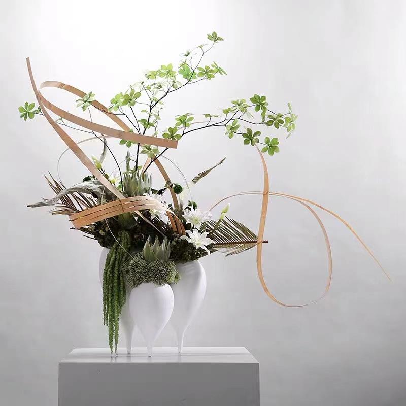 简约现代艺术陶瓷三脚磨砂白花器售楼处工艺品样板间玄关饰品摆件