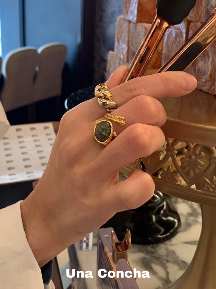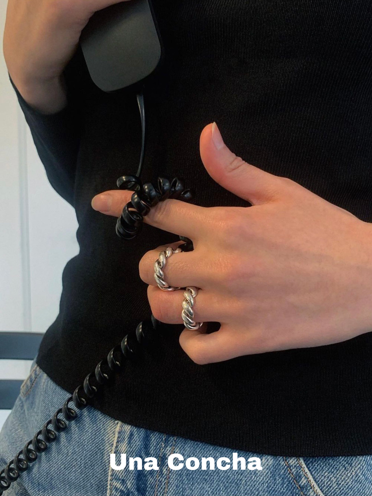 U.CA缠绕麻花戒指女小众设计极简冷淡风牛角包纯银尾戒 coldframe - Una Concha