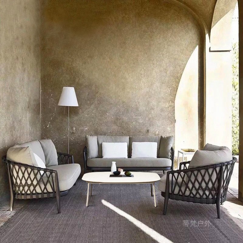 您的位置:他他商城  >   >  北欧户外沙发庭院民宿设计师样板房客厅家具花园休闲区外摆餐桌椅