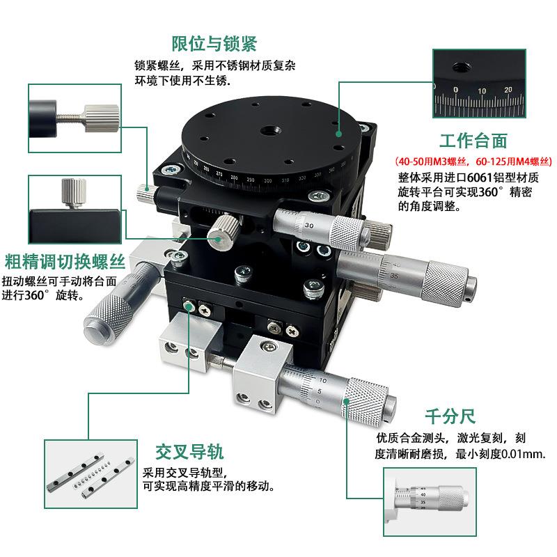 XYZR四轴位移台手动平移台精密实验四维微调光学滑台LTP40/60/90 - tb177165722425