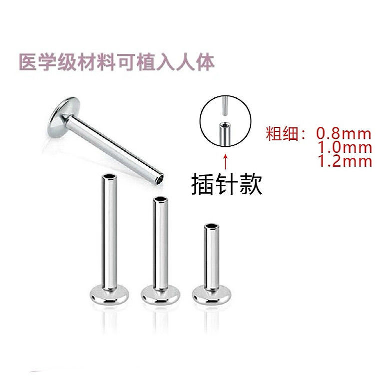 F316医用钛合金耳钉平底耳钉0.9牙口内螺纹杆插针简约新款防过敏