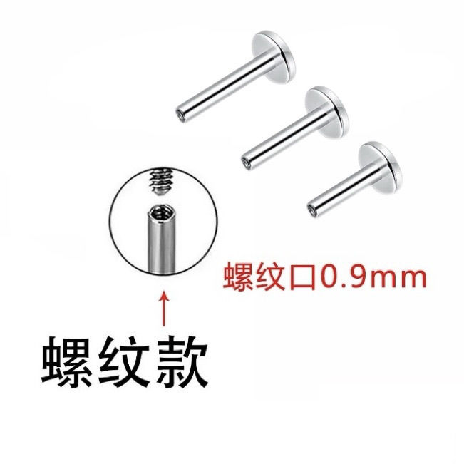 F316医用钛合金耳钉平底耳钉0.9牙口内螺纹杆插针简约新款防过敏 - OTHER饰品